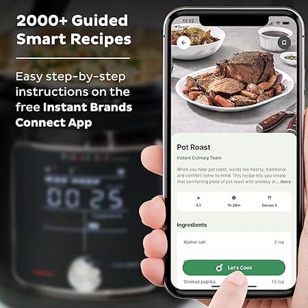 طنجرة ضغط ذكية من ماركة Instant Pot تعتبر جهاز 10 في 1 لطبخ أسهل وأسرع بالجودة العالية والطعم الرائع. الطنجرة متوفرة مع 10 وظائف مختلفة، وهذا يغنيك عن كثير من الأجهزة في المطبخ. الطنجرة تتميز بأنها مصنوعة من مادة الفولاذ المقاوم للصدأ، وهذا يضمن لك الجودة العالية لأطول فترة. الطنجرة تتميز بتشغيل اللاسلكي عبر تقنية الواي فاي عبر تطبيق الخاص بالطنجرة كما يوجد العديد من الوصفات في التطبيق تصل إلى أكثر من 1900 وصفة عبر تطبيق انستنت Brands Connect.