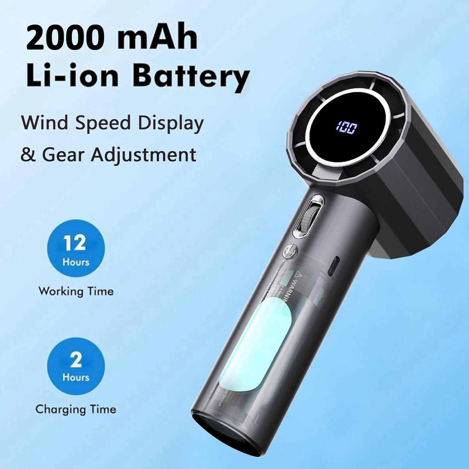 مروحة محمولة باليد تتميز هذه المروحة بحجمها الصغير الذي يسهل حملها في حقيبتك أو جيبك، مما يجعلها مثالية لجميع الأنشطة الخارجية. سواء كنت في رحلة تخييم أو في الهواء الطلق، ستوفر لك التهوية المثالية التي تحتاجها للتغلب على الحرارة. وتتمتع بمحرك يأتي بقوة فائقة ومزيج من محرك ثلاثي المراحل بدون فرش يحسن بشكل كبير من سرعة الرياح والطاقة والقدرة على التحمل. يمكن أن تصل سرعة الرياح القصوى إلى 9 متر.